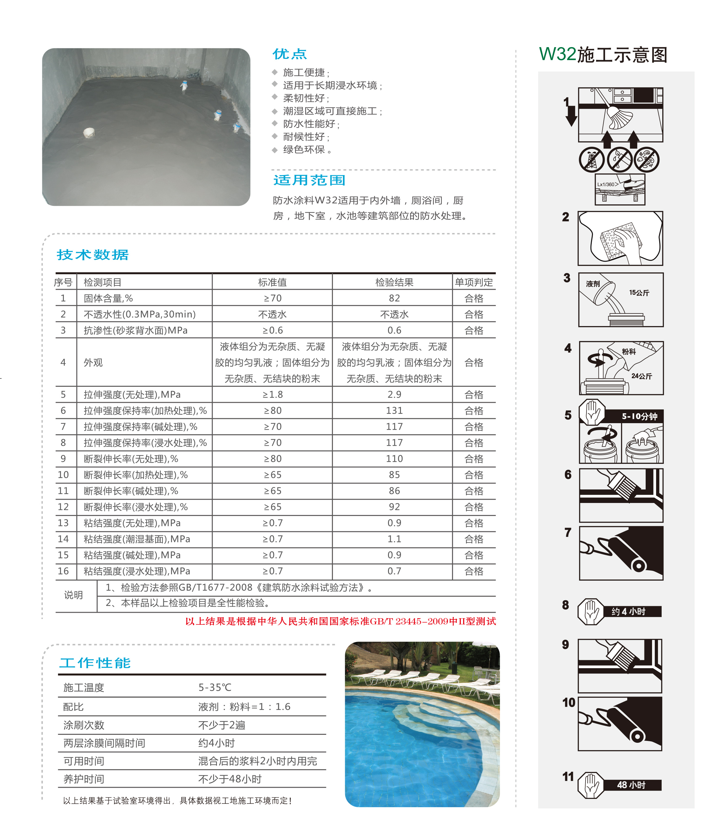 本産品(pin)按比例(li)適量攪拌(ban)調咊(he)即(ji)可使用(yong),具有可(ke)以(yi)在(zai)潮濕(shi)基(ji)麵(mian)施工(gong)、柔韌性好、抗(kang)滲性強、粘結力(li)高、耐(nai)久(jiu)性好(hao)的(de)特點。適(shi)用于(yu)內(nei)外牆、廁浴(yu)間(jian)、廚房(fang)、地(di)下(xia)室、水池等建築(zhu)部(bu)位(wei)的防水處理(li)。