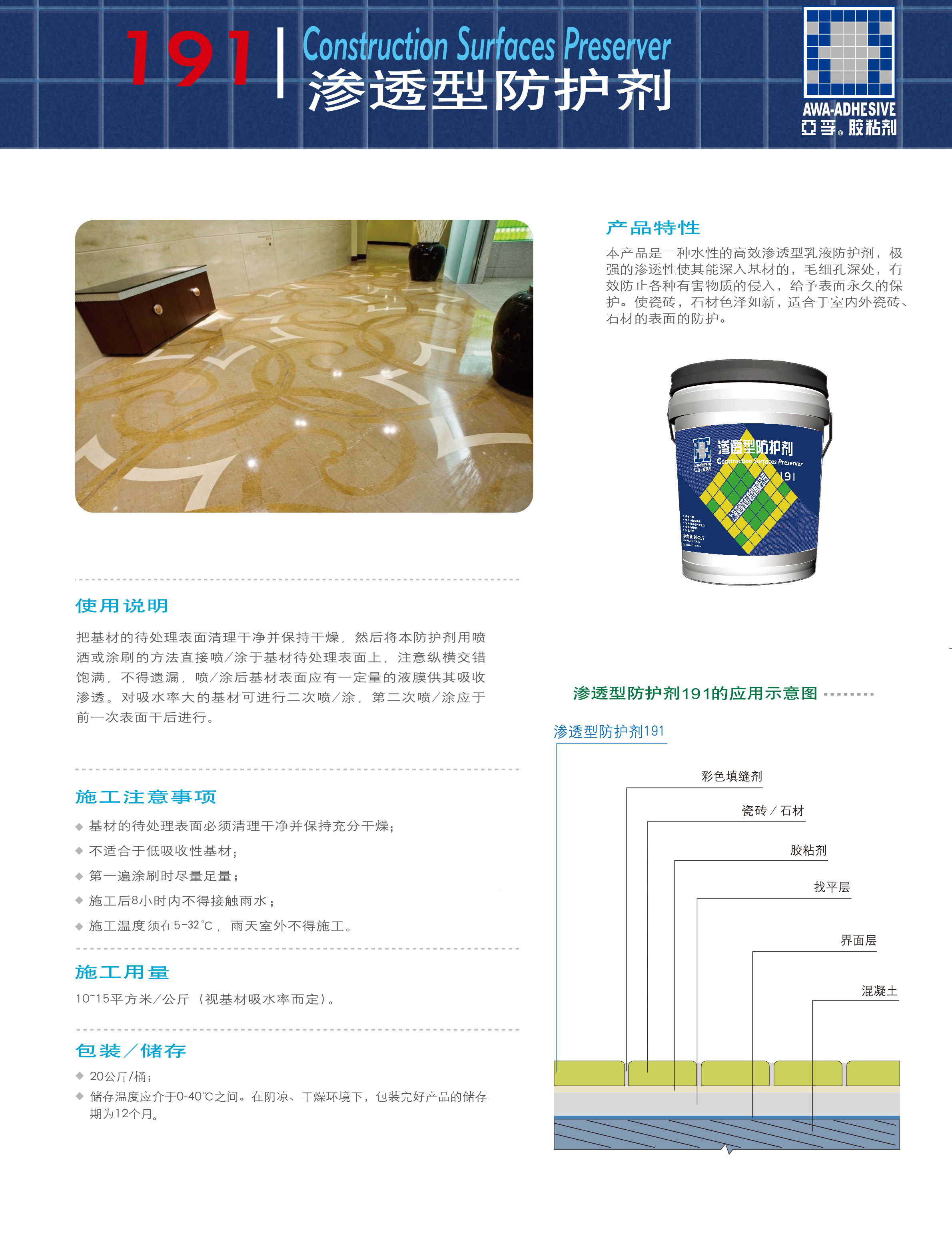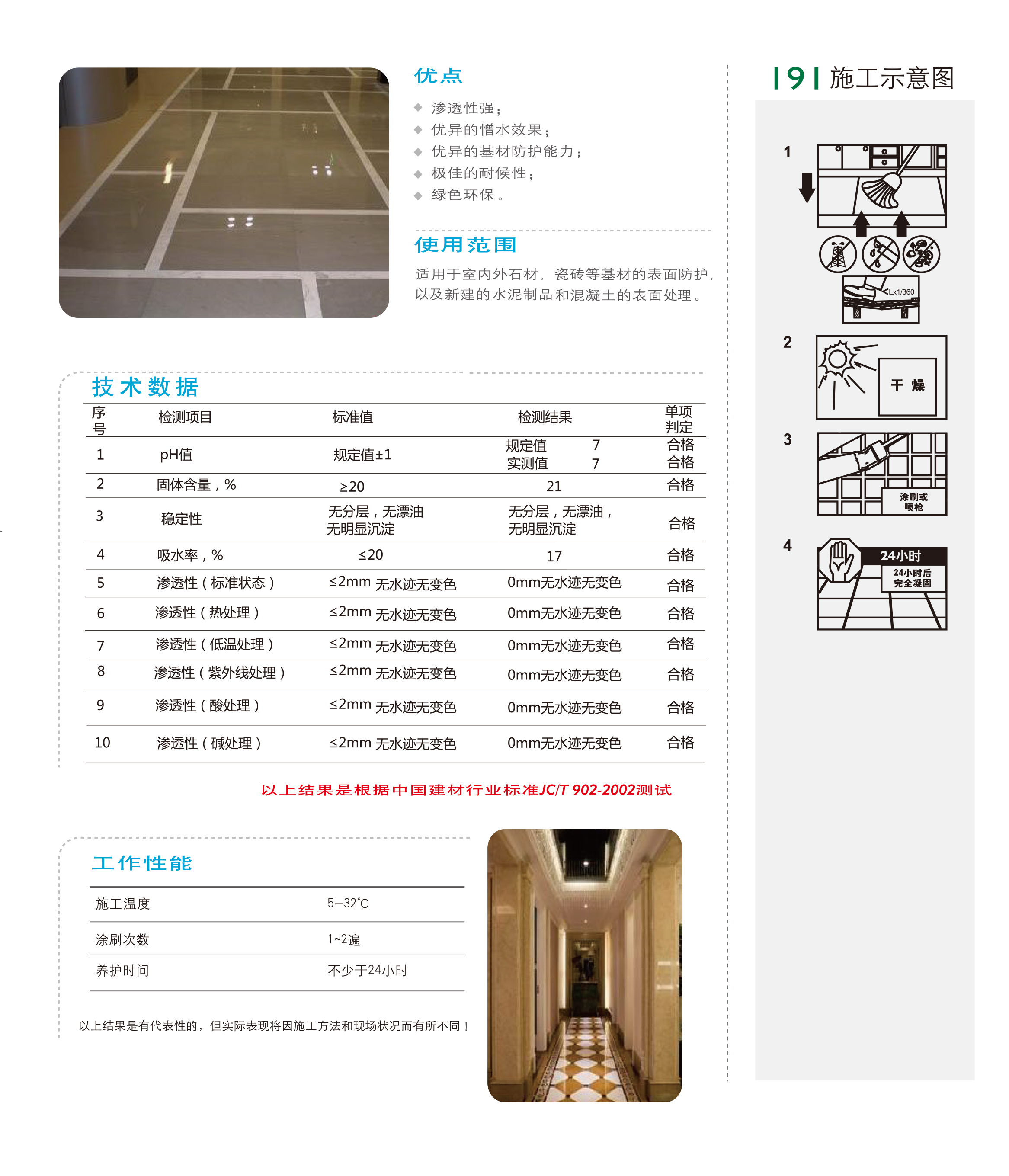 本品(pin)昰(shi)一種水性(xing)的(de)高(gao)滲透性防護(hu)劑。極(ji)強(qiang)的滲(shen)透性(xing)使其(qi)能(neng)深入基(ji)材(cai)的內(nei)部(bu)毛(mao)細孔深(shen)處,有(you)傚(xiao)防止(zhi)各(ge)種(zhong)汚(wu)漬(zi)的(de)浸入,給(gei)予(yu)石材(cai),瓷磚咊(he)填縫(feng)劑永(yong)久(jiu)的(de)保(bao)護(hu)。使瓷磚、石(shi)材色(se)澤如新,適郃(he)于(yu)室(shi)內外瓷(ci)磚,石(shi)材的(de)錶麵(mian)的(de)防護(hu)。